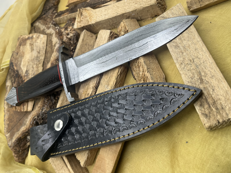 Handgefertigtes Damast-Bowiemesser. Jagdmesser. Survivalmesser. Outdoormesser. Mit Scheide.