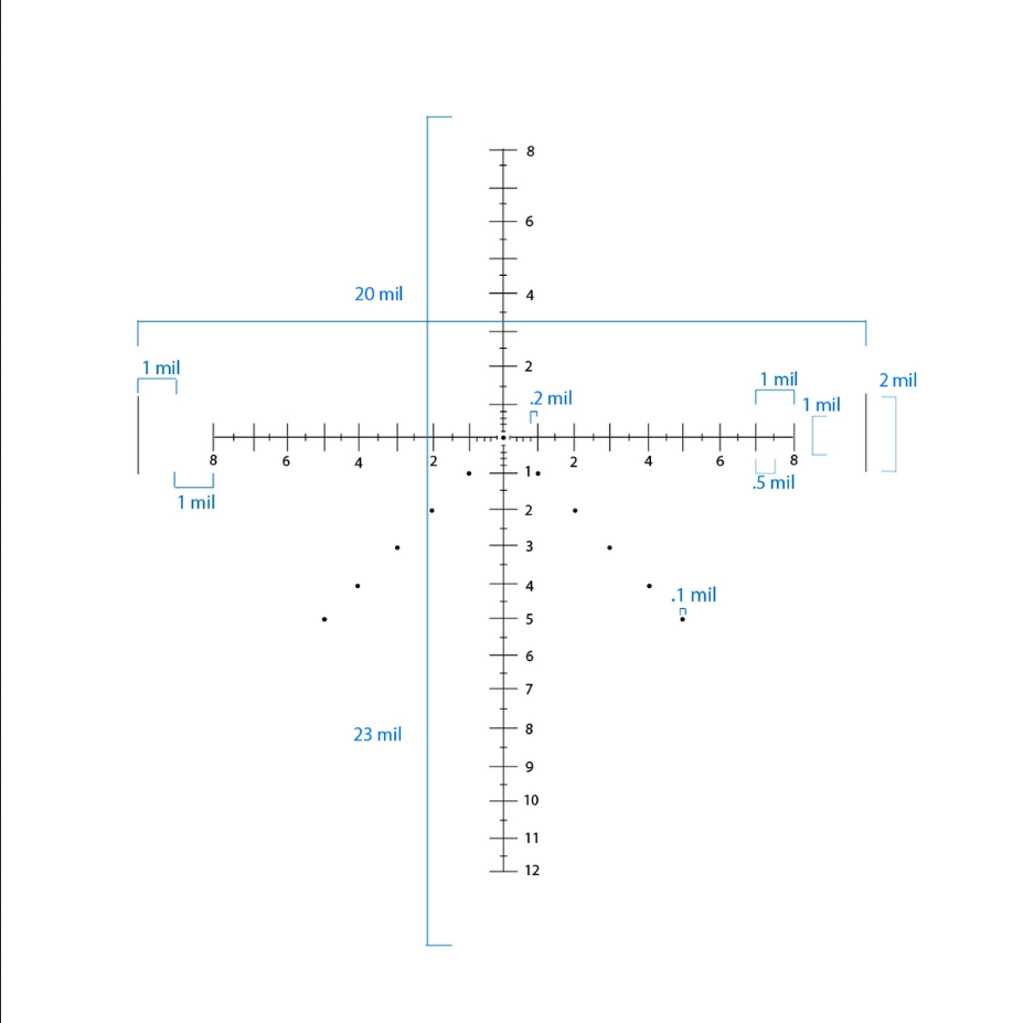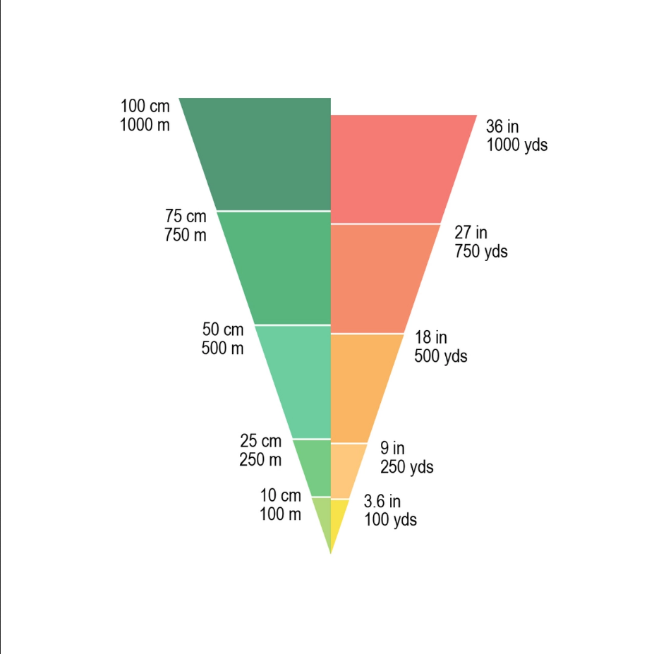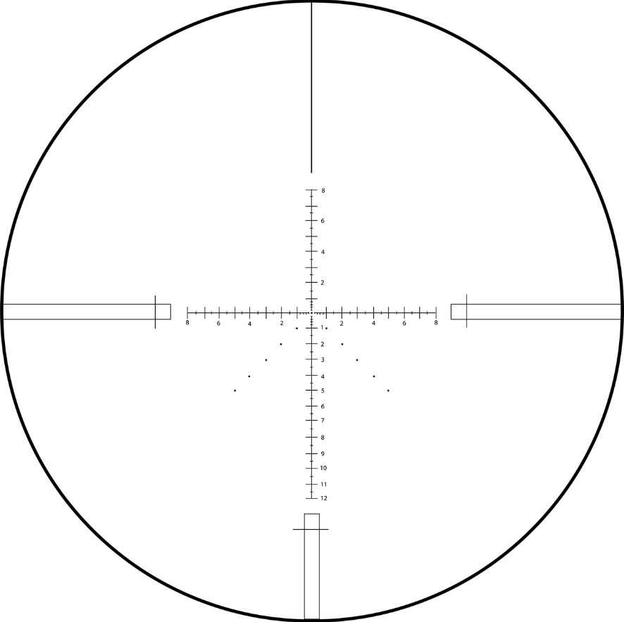 - Das Absehen der zweiten Brennebene ist auf eine 10-fache Vergrößerung kalibriert und muss auf diese Vergrößerungsstufe eingestellt werden, um präzise zu sein.