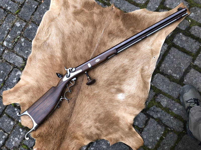 Zum Verkauf kommt aus einem Nachlaß ein Schweizer Perkussions-Scheibengewehr „Bristlen a Morges“ in Cal. 44 von Pedersoli.