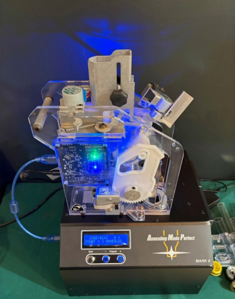 The Annealing Made Perfect (AMP) Mark II DB machine, paired with the AMP Mate automatic feeder, is currently considered the "gold standard" for brass annealing automation. This setup allows you to move from manual single-feeding to a fully automated, hands-free process.