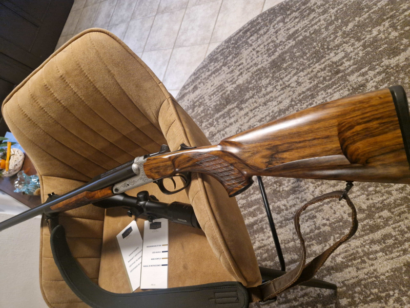 Doppelbüchse Blaser S2 in den Kalibern 9,3x74 R u. 5,6 x 50 R Magnum in sehr gutem Zustand siehe Bilder. Das abgebildete ZFR Kahles Helia samt Blaser Sattelmontage gehört ausdrücklich nicht zur Auktion. Es kann in einer weiteren Auktion erworben werden. Das trifft auch für den Blaser Gewehrriemen zu. Habe die Waffe nur wenige Male geführt. Dabei pfleglich umgegangen. Aus der Doppelbüchse sind nur wenige Schüsse raus. Die Läufer schießen ausgezeichnet zusammen mit meiner verwendeten Munition. Dank Mündungsverstellung kann unkomplizierte jede andere Laborierung mit wenig Aufwand selbst eingeschossen werden. Das ist ein großer Vorteil gegenüber den Varianten von Krieghoff und Heim.