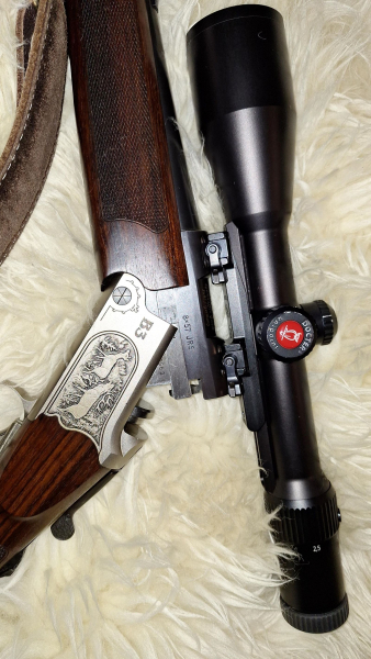Sehr schöne Merkel B3 (zwei Schlosse) BDB im Kaliber 8x57 IRS mit neuwertigem Docter 2,5-10x50 Unipoint Absehen 0 Tagesleuchpunkt. Waffe hat wenig Schuss gemacht. Waffe wird vorher noch einmal eingeschossen u. überprüft, da Optik getauscht wurde. Das Glas befindet sich auf einer Merkel Klemmmontage für Zeiss - Innenschiene. Waffe kann auch ohne Optik verkauft werden. Dann reduziert sich der Preis um 650 EUR. Zustand sehr tadellos ohne Gebrauchsspuren bis auf leicht Beschädigung an der Fischhaut rechts durch Anstreichen. Siehe Bild.