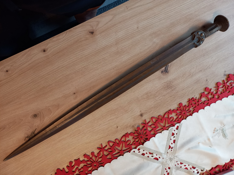 Verkaufe Bronzeschwert sehr guter Nachbau, sehr massiv 1,7kg Länge 74cm, voll Metall alles fest kein Rost.