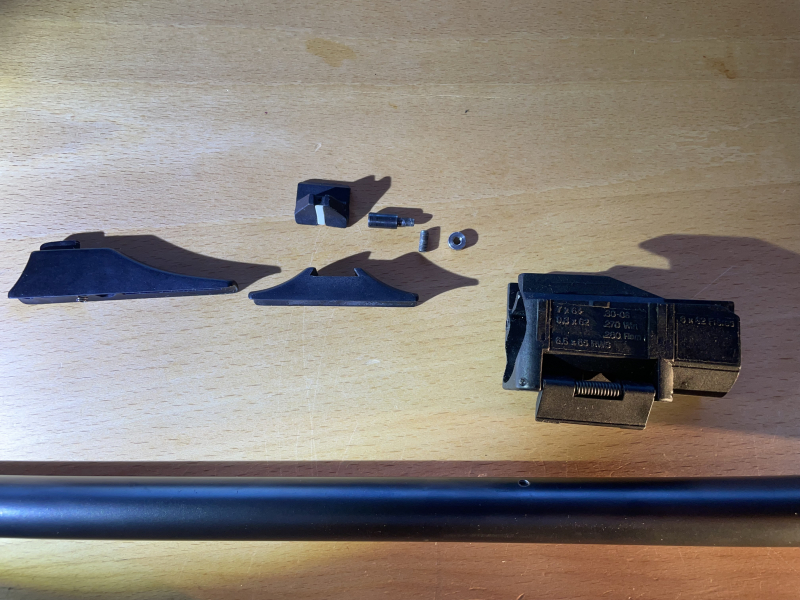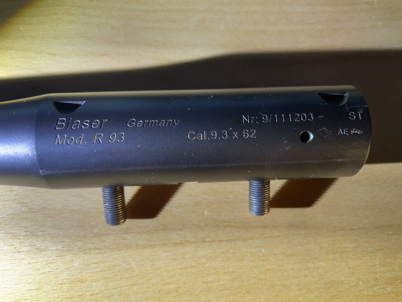 R93 Wechsellauf im Kaliber 9,3x62 mit exzellenter Schussleistung! Der Mündungsdurchmesser beträgt 17 mm, die Gesamtlauflänge beträgt 540 mm (siehe Foto). Damit das Vorsatzgerät nicht mit der Kimme kollidiert, habe ich das Korn gleich mit abgenommen! Es sind in den Gewinden keine Klebereste. Es können das Korn und die Kimme problemlos wieder verschraubt werden. Diese liegen mit dem Magazin anbei! Ein toller Lauf, Verkauf wegen Überzahl!