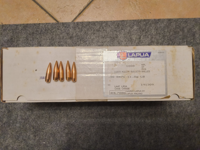 Hallo zusammen, verkaufe hier Lapua Geschosse .cal.30. 11g. / 169 grain. 905 Stück, loose verpackt in 100 Stück-Packungen. Zustand siehe Bilder. Gemäß neuem EU-Recht erfolgt dieser Privatverkauf unter Ausschluss jeglicher Gewährleistung, Garantie, Umtausch und Rücknahme. Bilder sind Bestandteil der Beschreibung und damit der Auktion.