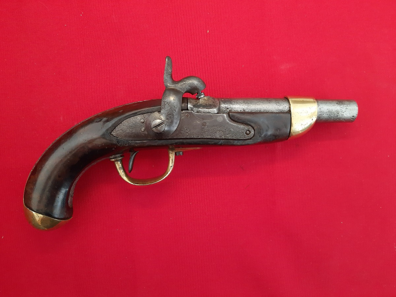 Länge ca. 31 cm, Gewicht ca.1100 Gramm, Hahn rastet 2 Mal. Mechanisch / optisch noch guter Zustand, die Schlossplatte Krone darunter M gestempelt. Piston gängig und frei, wurde in jüngerer Zeit offensichtlich ersetzt. Alle Montierungen in Messing mit Abnahmestempelungen versehen. Ladestock fehlt. Schönes Schaftholz. Ein handliches Belegstück aus alter Zeit, durchaus noch schussfähiger Zustand. Privatauktion keine Garantie, Rücknahme Gewährleistung und Nachverhandlung! Siehe Bilder. Verkauf nur innerhalb Deutschland Altersnachweis erforderlich!