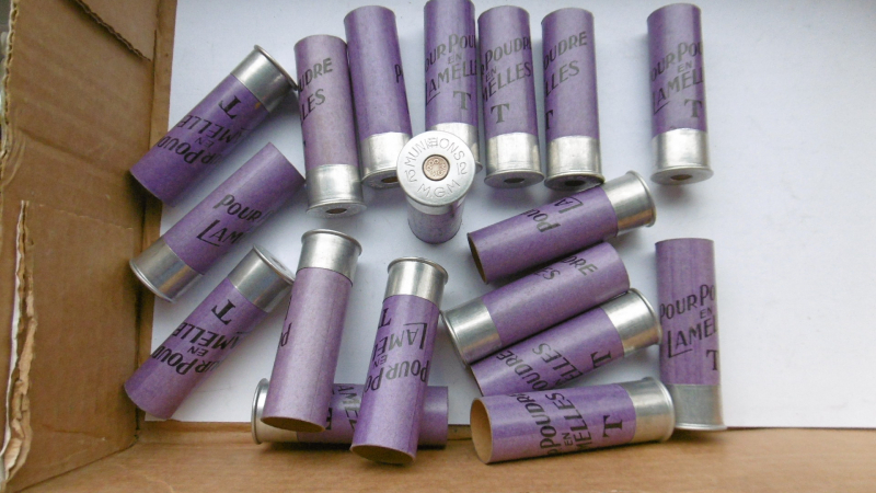 Angeboten werden 18 leere, ungebrauchte Schrothülsen Kal. 12 für rauchloses Pulver in neuwertigem Zustand. Hersteller MGM Manufacture Generale de Munitions