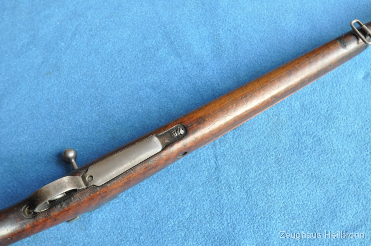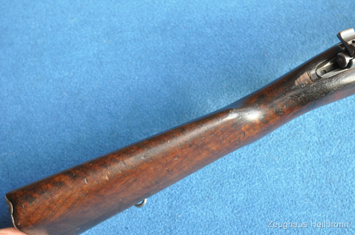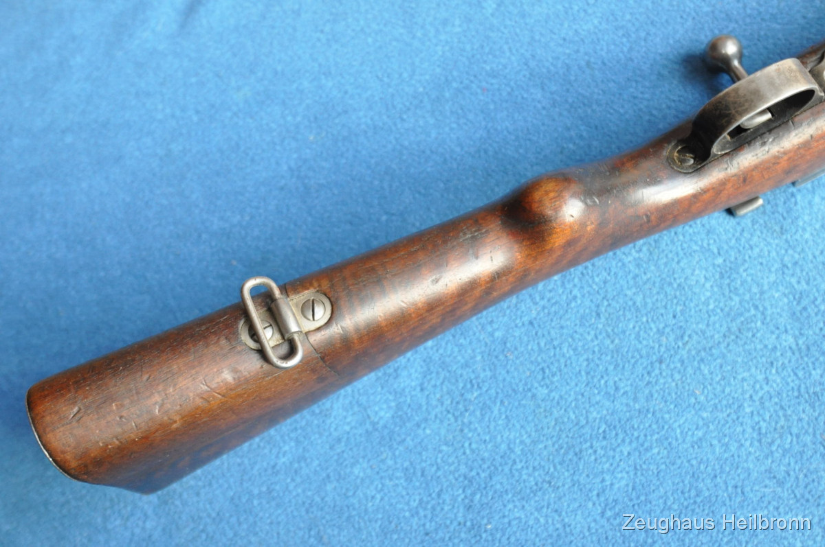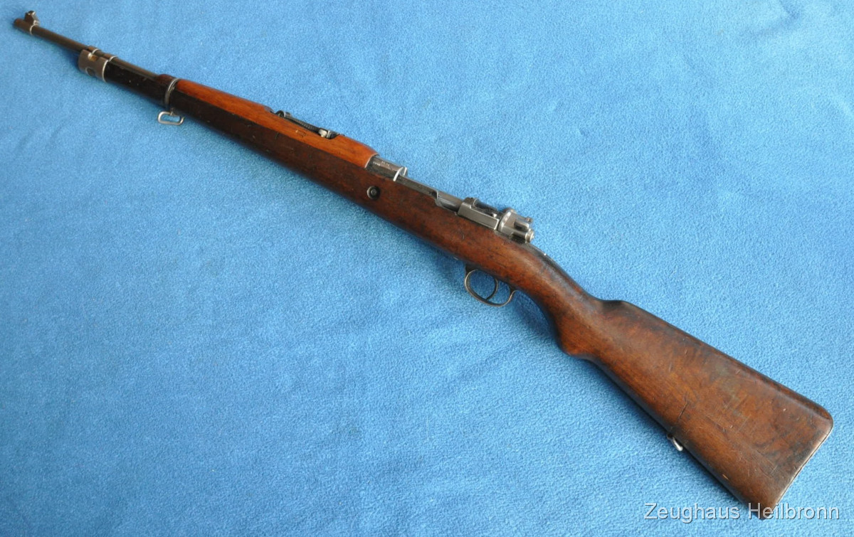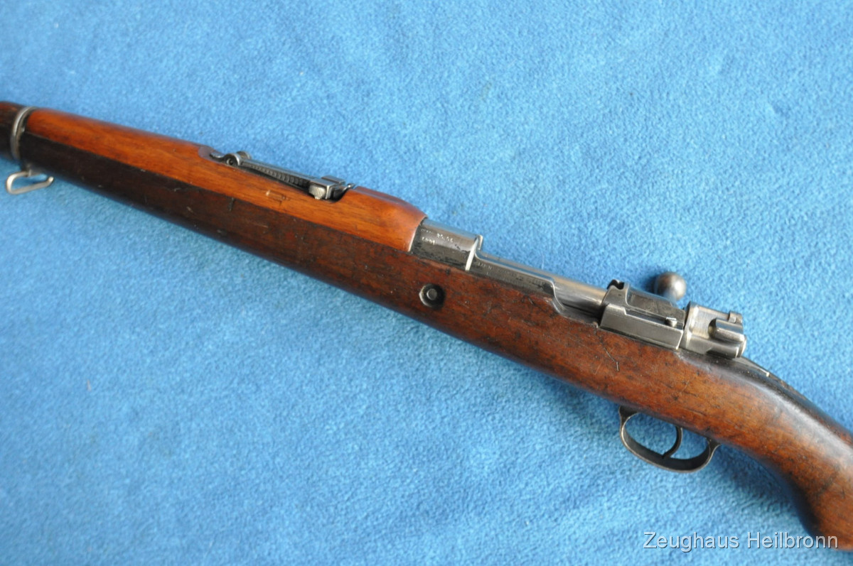 Kongolesische Ordonnanz. Mauser-System, Fertigung FN Herstal. Schwarz ematailliert über phosphatiertem Stahl. Diese Gewehre waren 1960, als der Kongo seine Unabhängigkeit erlangte, in grossem Umfang im Einsatz. Es dauerte nicht lange, bis das Land in einem blutigen Bürgerkrieg versank. Ableger der Force Publique war die neu gegründete A.N.C. (Armée Nationale Congolaise). Die Truppen der A.N.C. waren überwiegend mit Mausergewehren des Modells 1930 bewaffnet, teilweise auch mit FN-49 (SAFN), Vigneron Maschinenpistolen und FAL-Gewehren.