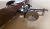 Mit verschiebbarem Korn, zwei seitenverstellbaren Kimmenblättern, brüniertem Lauf von Achtkant in Rund übergehend.