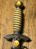Aus Nachlass biete ich einen Dolch der Luftwaffe / Luftwaffenoffiziersdolch / Luftwaffendolch an. Der Dolch ist gut erhalten. Da ich nicht weiß, ob dieser LOD wirklich original ist, wie mir gesagt wurde, biete ich den kompletten Dolch und die Scheide als Kopie bzw. als Nachbildung zum Verkauf an! Auf der Parierstange ist ein Reichsadler mit HK versehen! Und am Griffkopf ist auch ein HK versehen. Die Gesamtlänge mit Scheide sind ca. 42 cm! Die Klingenlänge mit dem kompletten Griff ca. 38 cm! Die Klingenlänge ist ca. 25 cm! Auf der Klinge ist ein Herstellerstempel zu sehen. Siehe Bilder