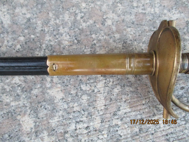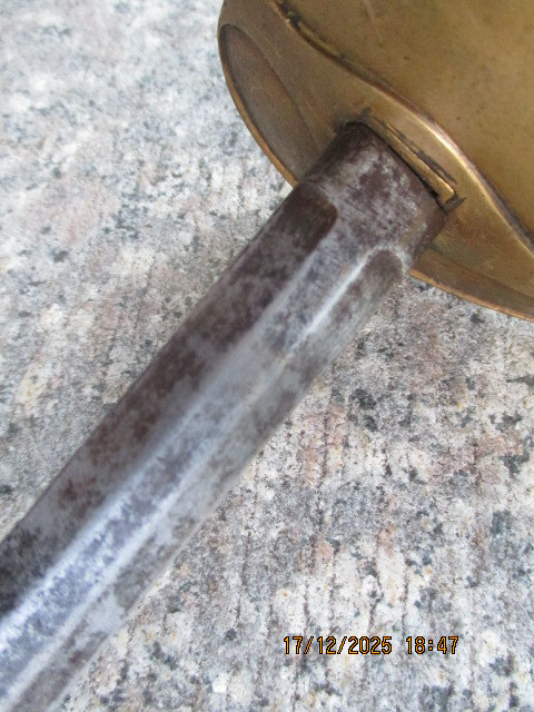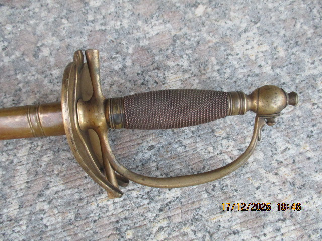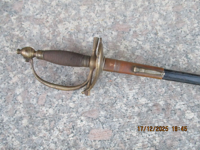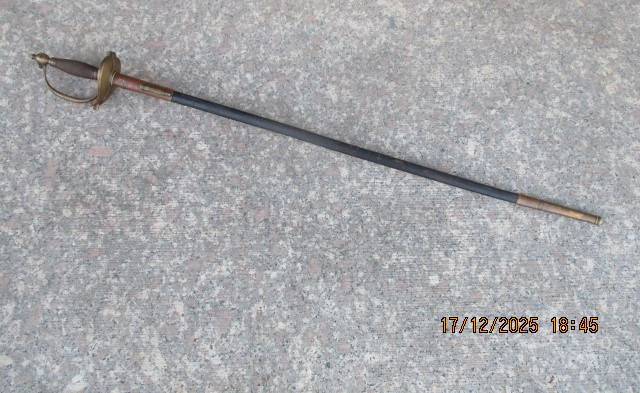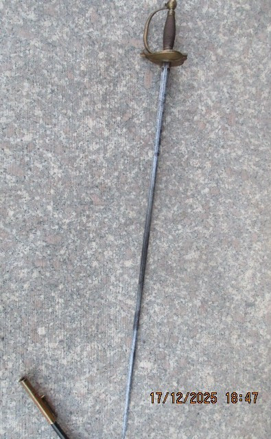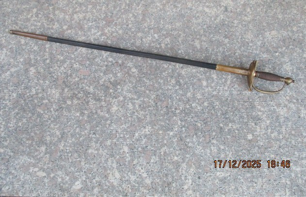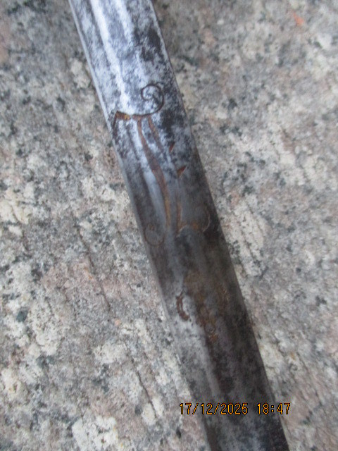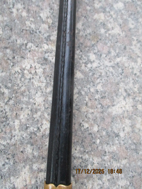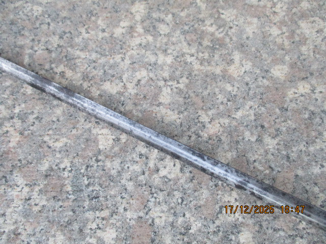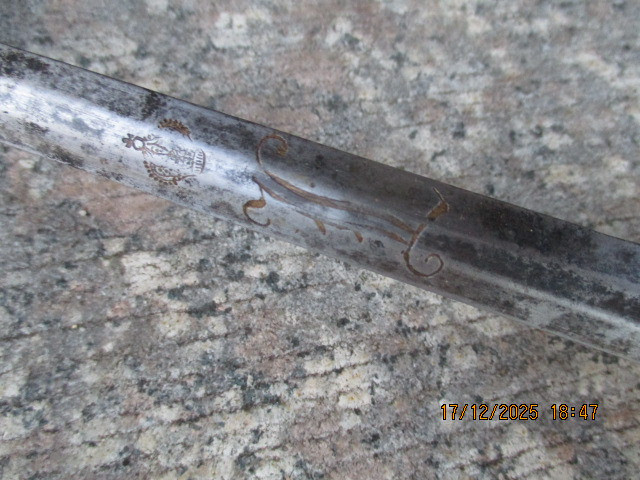 Degen mit Gravierter Klinge und Lederscheide, Gesamtlänge mit Scheide ca. 93 cm