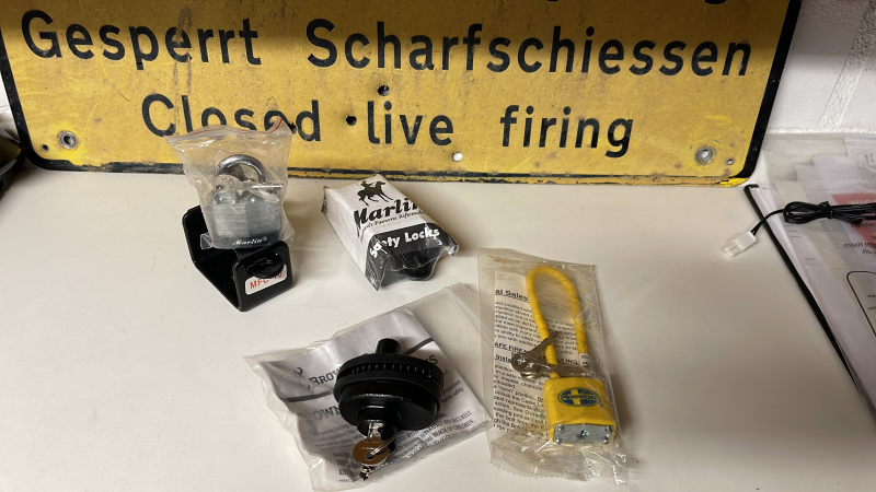 Diverse Schlösser, u.a. Hersteller Mossberg, Browning u. Marlin. Neuware aus altem Kagerbestand.