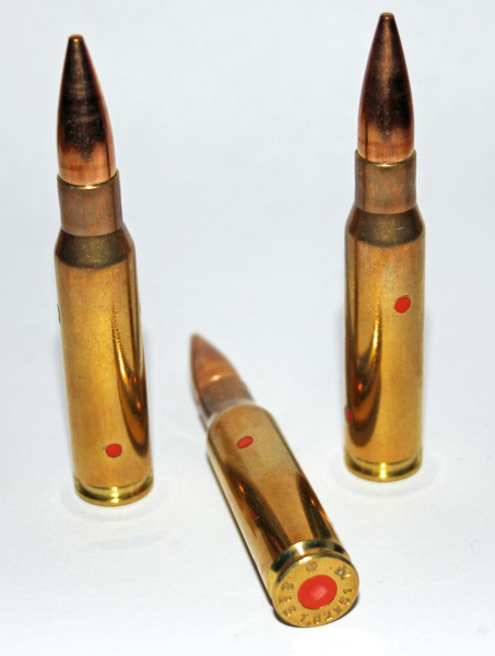 hier haben wir dem original nichts nachstehen Exerzier Dummipatronen aus Messinghülse und VM-Geschoss ein satz besteht aus 5 Expatronen für das Kaliber7,62x51 bzw .308 Win. Die Patronen sind mit einem kleinen Loch gezeichnet und mit Kunststoff gefüllt