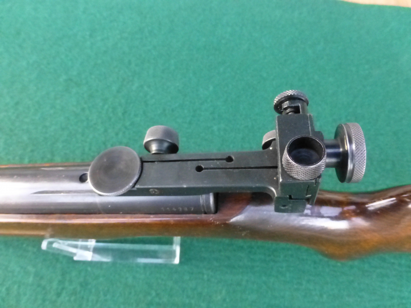 Das angebotene Weihrauch LG Mod. 50 S (F) ist technisch in einer einwandfreien Funktion. Der lackierte Schaft hat Gebrauchsspuren. Auch die Funktion des Diopters ist gewährleistet.