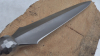 Die Spitze wurde aus 1075 er Feder-Schwertstahl geschmiedet. Das Blatt hat eine Lindenblatt förmige Spitze, die optimales Eindringverhalten und maximale Stabilität mit sich bringt.