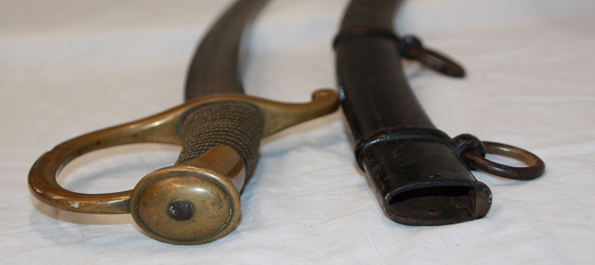 Komplett mit Scheide. Alters und Gebrauchsspuren, aber in guten Zustand.