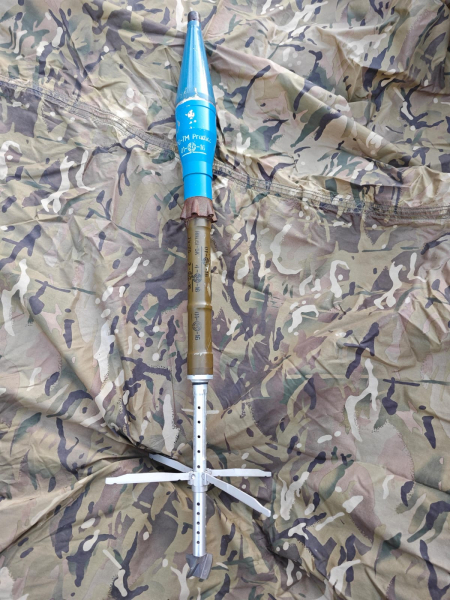 Übungsmunition des Typs PG-7M wurde für die Ausbildung von RPG-Bedienmannschaften eingesetzt, um Transport, Ansetzen und den Umgang mit der Munition unter realistischen Bedingungen zu trainieren. Die blaue Farbgebung kennzeichnet die Übungsausführung.