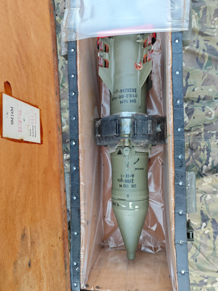 Die Rakete befindet sich in der originalen militärischen Holztransportkiste inklusive der zugehörigen Dokumentations- und Begleitunterlagen, exakt in dem Zustand, wie sie ordnungsgemäß aus den Beständen der Tschechischen Armee ausgemustert wurde.