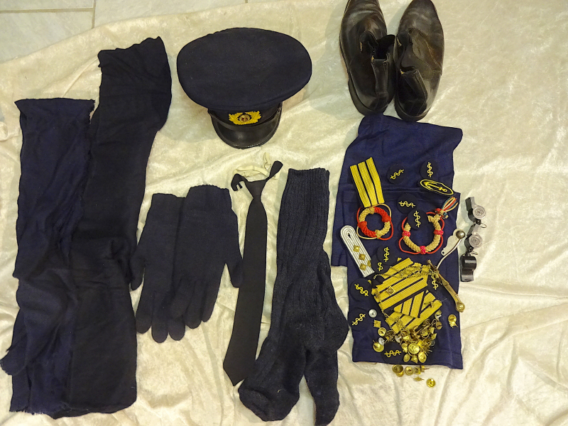 Diverse Textilien aus dem Nachlass eines Fregattenkapitäns: Schirmmütze, Schals, Krawatte, Handschuhe, Halstücher, Effekten und Abzeichen, Schuhe usw. Alles Maritime was sie auf den Fotos sehen. Originalität wird zugesichert. Privatverkauf.