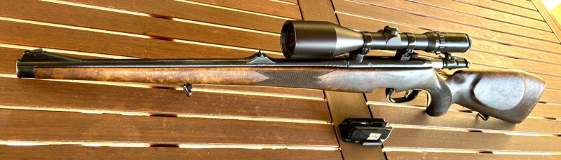 Mit Steyr Schwenkmontage einem Kaps-Wetzlar 2,5 bis 10x56 Zielfernrohr mit absehen, vier ohne Leuchteinheit.