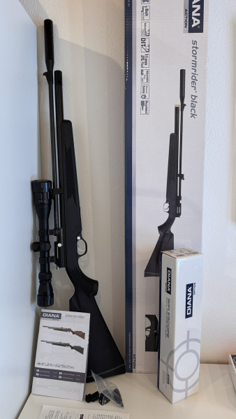 Verkaufe ein "DIANA stormrider black" Kaliber 4,5 mm (.177) <7,5 Joule inklusive Diana Zielfernrohr (eingestellt, muss aber für Versand vermutlich demontiert werden).