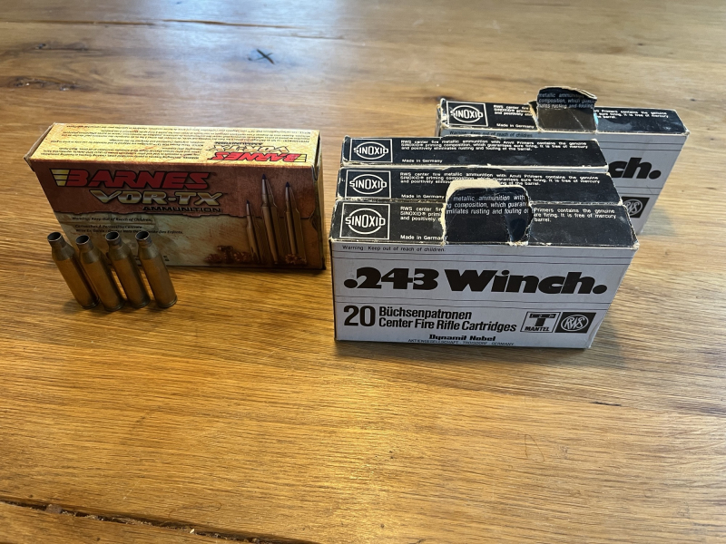 Verkaufe Hülsen .243 WIN einmal abgeschossen, ungereinigt : 24 Barnes, ein Los, 20 RWS Los 62UT, 52 RWS Los 58UT. Privatverkauf, keine Gewährleistung, keine Rücknahme, kein Umtausch. Versand innerhalb EU gegen Kostenübernahme (Mehrpreis)