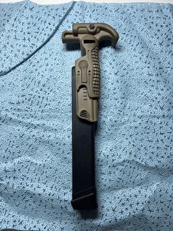 Ich hatte den Griff lange an einer Glock mit dem Cobra Klappschaft - das war eine echt kompakte und funktional gute Kombination. Der Griff hat daher ein paar rein optische Gebrauchsspuren - er funktioniert aber noch absolut einwandfrei.