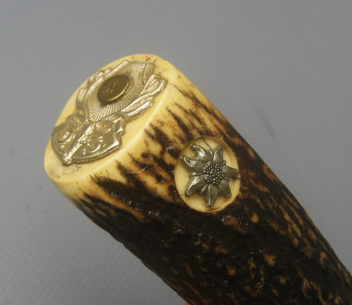 Flaschenöffner , Hirschhorn mit altem Jagd Abzeichen vor 1945 , Rest siehe Bilder.