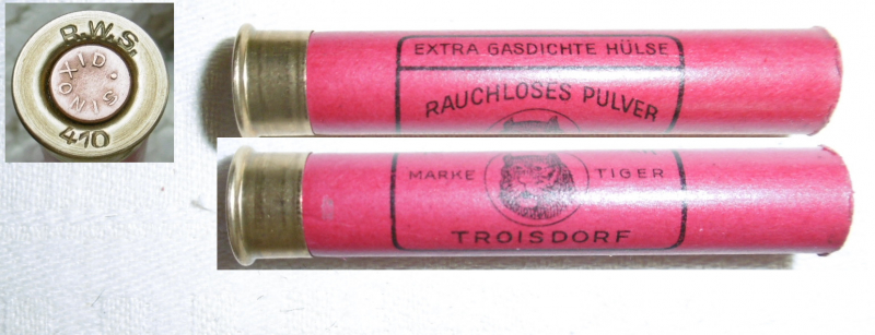 Angeboten wird 1 leere, ungebrauchte Schrothülsen Kal. .410 in neuwertigem Zustand, Marke TIGER, hergestellt Ende der 1930er Jahren von RWS. Offensichtlich ein Exportauftrag, da dieses Kaliber seinerzeit in Deutschland nicht üblich war.