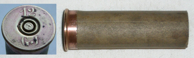 Angeboten wird 1 leere, ungebrauchte Schrothülsen Kal. 12, Marke GJ, erhaben gestempelt, eine frühe Fertigung der Patronenhülsenfabrik Bischweiler/Elsass -Walbinger&Meuschel- vor 1914. Die Hülse lagerte auf dem offenen Dachboden der Büchsenmacherei ERDELT in Neustadt/Haardt (Weinstraße). 100 Jahre Schmutz habe ihre Spuren hinterlassen die nicht mehr ganz zu entfernen sind.