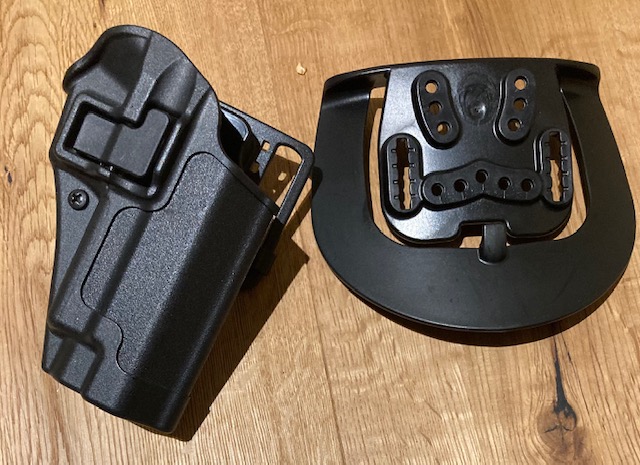 Versteigere original Blackhawk CQC Holster (inkl. Gürtelschlaufe) mit extra Paddle zum schnellen An- und Ablegen für die SIG 220/ 225/ 226/ 229 oder deren Nachbauten, neu und unbenutzt in OVP.