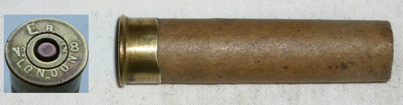 Angeboten wird 1 leere, ungebrauchte Schrothülsen Kal. 28, erhaben gestempelt, eine frühe Fertigung von Eley Bs. London. Die Hülse lagerte auf dem offenen Dachboden der Büchsenmacherei ERDELT in Neustadt/Haardt (Weinstraße). 100 Jahre Schmutz habe ihre Spuren hinterlassen die nicht mehr ganz zu entfernen sind.
