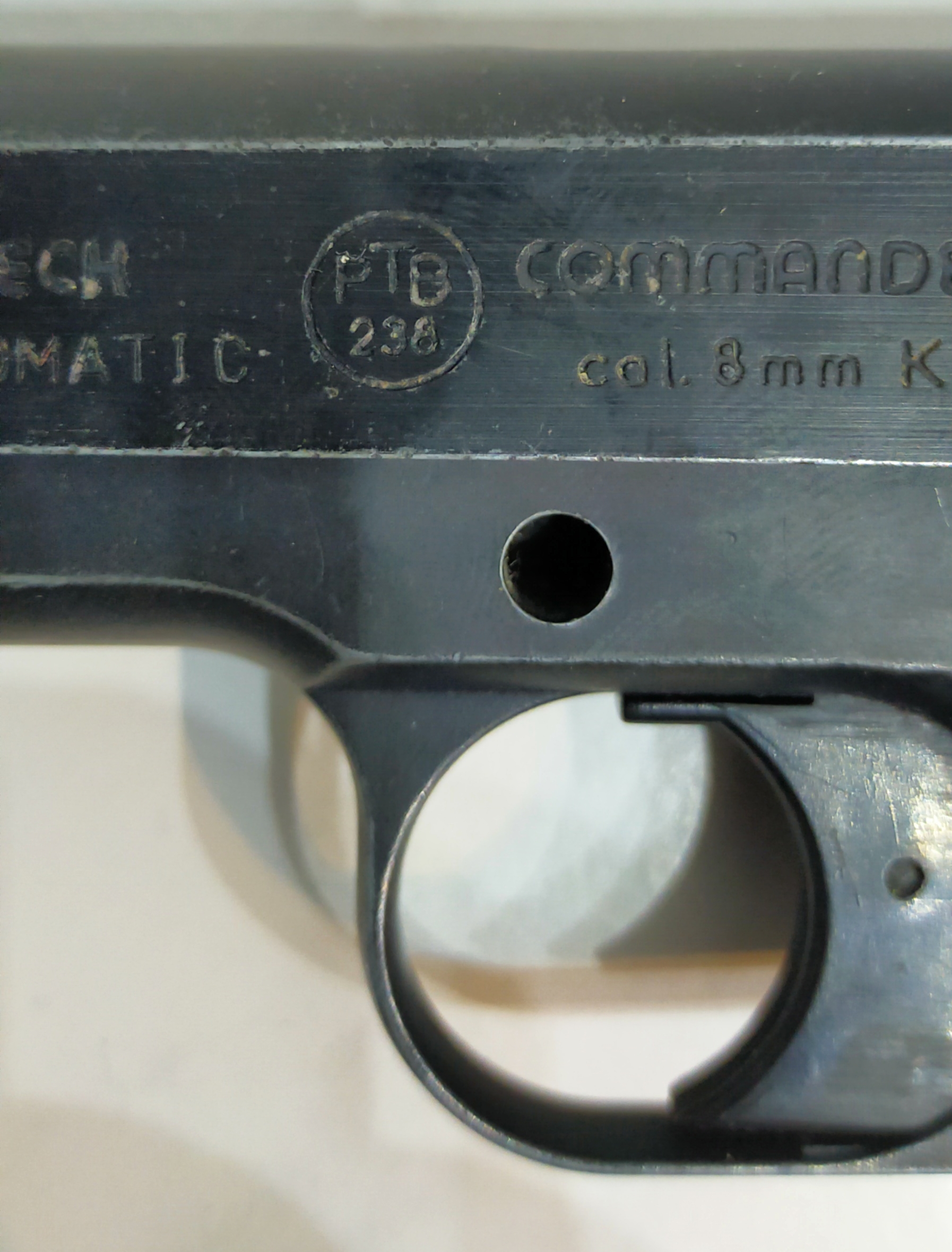 Ich verkaufe hier eine SSW RECK Commander im Kaliber 8mmK. PTB 238. Deutliche Gebrauchsspuren. Der Schlittenfanghebel fehlt, daher Verkauf als defekt. Funktion trocken getestet und in Ordnung.