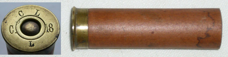 Angeboten wird 1 leere, ungebrauchte Schrothülsen im seltenen Kal. 18. Eine Fertigung der Capsulerie Liegoise V. Francotte in Lüttich. Diese Hülse lagerte auf dem offenen Dachboden der Büchsenmacherei ERDELT in Neustadt/Haardt (Weinstraße). 100 Jahre haben eine Menge Schmutz hinterlassen, der noch nicht ganz entfernt ist.