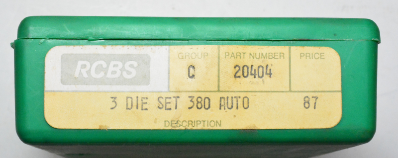 Sie bieten auf den abgebildeten , neuwertigen RCBS-Matrizensatz für das Kal. .380 ACP / 9mmkurz. Vor Abgabe des Gebotes bitte die Bilder betrachten. Es handelt sich hierbei um eine private Auktion, ohne jegliche Gewähr-und Garantieleistungen. Keine Rückgabe.