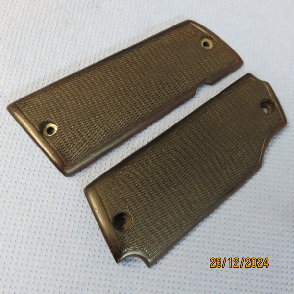 Schöne Nussbaumgriffschalen für die Spanische Armeepistole Star A,B und auch BS mit Magazinsicherung. Fischhaut intakt , keine Beschädigungen, Bohrungsabstand Mitte Mitte 85 mm.