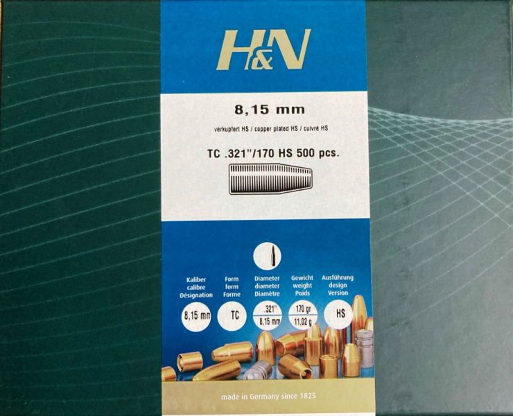 Biete 500 Stück Haendler & Natermann Geschosse für Feuerstutzen Kaliber 8,15x46R