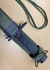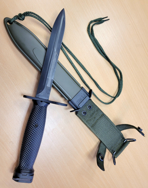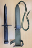 US M7 Bajonett mit Scheide und Beinriemen aus Eickhorn-Fertigung. Gesamtlänge 30cm, Klingenlänge 17cm, Klingenstärke 5mm, Klingenbreite 22mm, Gewicht 280g, Material: bruchelastischer Federstahl mit einer Härte von 53 HRC, Griff aus schwarzem Kunststoff, Scheide mit Gürtelschlaufe und U-Bügel (für US-Lochkoppel), Material: grüner Kunststoff, Mundblech aus Stahlblech, Nieten mit „Eickhorn“-Schriftzug versehen (siehe Fotos). Das Bajonett ist absolut neuwertig, Klinge ist noch ungeschliffen. Lieferumfang: Bajonett, Scheide, Beinriemen. Bajonett ist kompatibel mit AR-15 (M16, M4, …), Steyr AUG, Galil, FN FNC, Beretta AR70/90 und alles an Waffen, welche über die Standard NATO-Bajonettaufnahme verfügen. Das Messer wurde als Sammelmesser einer Sammlung angeschafft, die nun aufgelöst wird. Versand als versichertes DHL-Paket. Da Privatverkauf keine Garantie / kein Umtausch. Bitte Altersnachweis beachten (frei ab 18 Jahren).