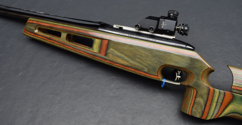 Schichtholzschaft mit einstelbarer Backe & Schaftkappe und UIT-Schiene. Lauf sehr gut, Brünierung 97%, Schaft sehr gut