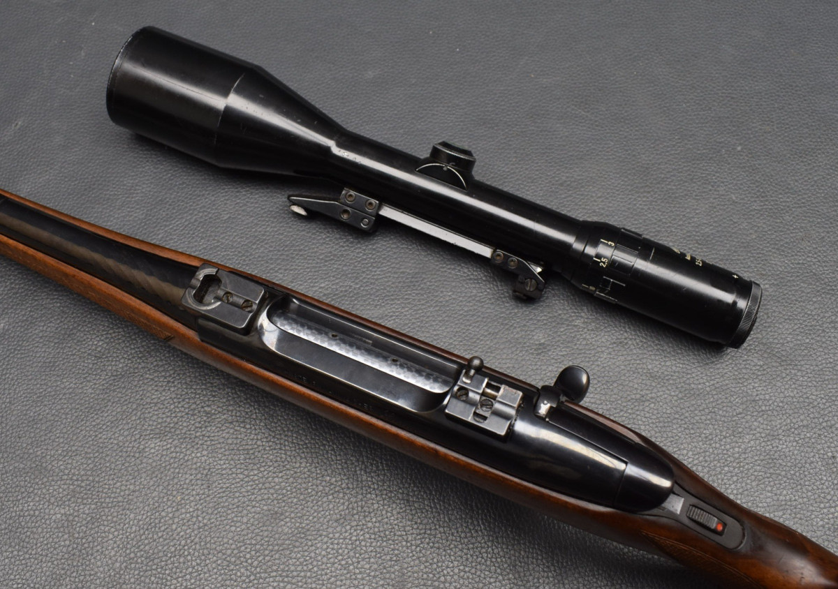 Sicherung auf dem Kolbenhals, herausnehmbares 3-Schuß Magazin.