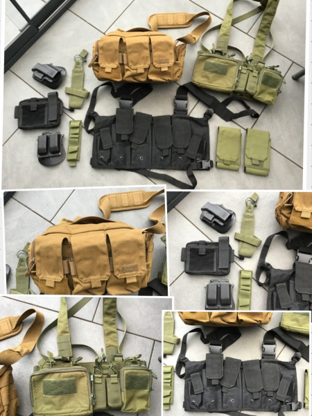 Es wird aufgeräumt. Biete taktische Taschen, Zubehör, Chestrig Holster Glock 19 etc. an. Wird zusammen verkauft, weil ich es nicht einzeln verschicken möchte. Eine 5.11 Tasche, ein Trainings-Rig oliv, 2x Magazintaschen AR15 oliv, Holster Glock mit Doppelmagazintasche Kunststoff, Flaschenhalterung und Schrotpatronenhalterung oliv, Chestrig schwarz. Viel Spaß beim Bieten. Kein Versand ins Ausland.