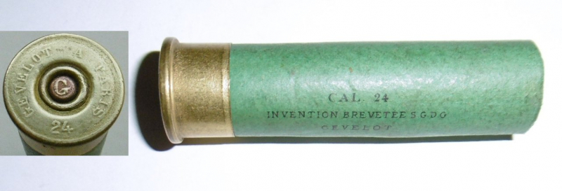 Angeboten wird 1 leere, ungebrauchte Schrothülsen Kal. 24 in neuwertigem Zustand. Eine frühe Fertigung von Gevelot mit erhabenem Stempel.