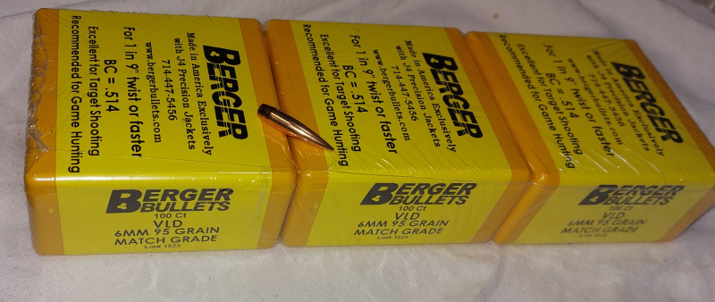 Eine Schachtel original Verschlossen und Versiegelt Berger 6mm VLD Boot-Tail.