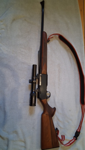 Ich biete eine gepflegte halbautomatische Büchse der Marke Browning, Modell Bar, im Kaliber .308 Win zum Verkauf an.