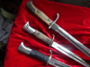 Sie bieten hier auf 3 Stück alte Bajonette leider ohne Scheide, 1. 98/05 alter Art in mässigen Zustand (Drücker fest, Griffschalen original jedoch gereinigt, Klingenspitze angeschliffen) 2. Ausgehbajonett lang mit Hirschhorngriffschalen in noch gutem Zustand, Drücker funktioniert, Klinge ohne Scharten u. nicht geschliffen, 3. Ausgehbajonett kurz, in gutem Zustand, Drücker funktioniert, Hersteller Herder Solingen, leider wackelt die Klinge, alle 3 garantiert alt und original, darauf gewähre ich uneingeschränktes Rückgaberecht, ebenso bei falscher Beschreibung, ansonsten da Privatverkauf keine Gewährsübernahme! Ich biete diese 3 Stücke als Bastlerstücke an, nicht damit es nachher Beschwerden gibt!