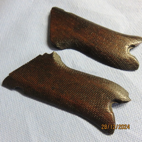Griffschalen für die Pistole 08, Originale in guter Erhaltung, keine Risse, gute Fischhaut, Rückseitig nummeriert.