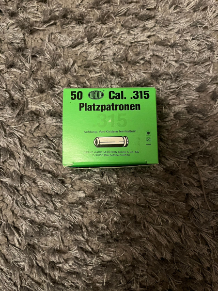 Zum Verkauf steht je Sofortkauf eine Packung 315 K Platzpatronen der Marke Wadie für Schreckschuss Waffen.