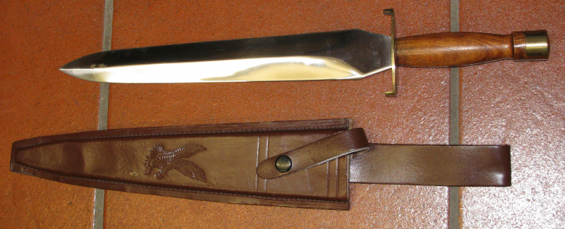 Zum Verkauf kommt ein Spanisches Auflaufmesser für die Wildschwein - Jagd, ähnlich Sauspiess / Saufeder mit Lederscheide