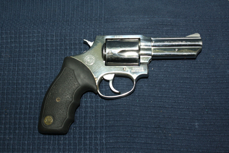 Ich verkaufe eine exzellente Fangschusswaffe - einen Taurus Revolver, Kal. 357 Mag, 5 Schuss, 3-Zoll Lauf mit Lederhalfter und Futteral.