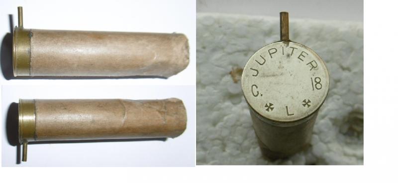 Angeboten wird 1 leere, ungebrauchte Schrothülsee im seltenen Kal. 18, Marke JUPITER. Eine Fertigung von Francotte in Lüttich für Versandhändler Dornheim, der die Namensrechte dieser Marke besaß. Fertigung vor 1928. Diese Hülse lagerte auf dem offenen Dachboden der Büchsenmacherei ERDELT in Neustadt/Haardt (Weinstraße). 100 Jahre haben eine Menge Schmutz hinterlassen, der noch nicht ganz entfernt ist.